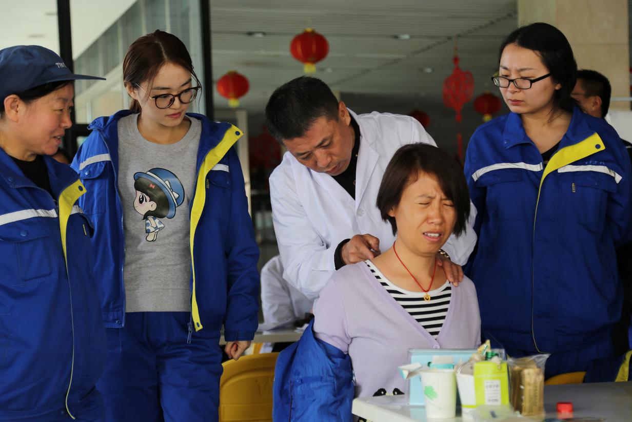 義診從上班時(shí)間開(kāi)始,到下午2:30仍有很多職工在排隊(duì)等待池老師的針灸療法